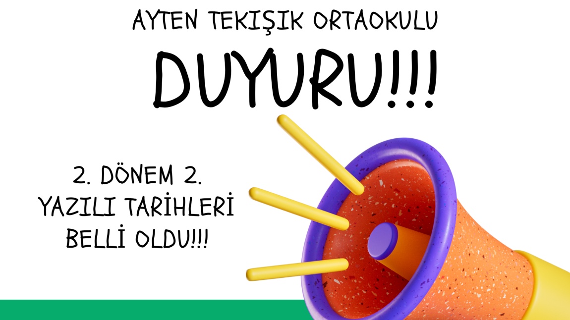 Okulumuzda uygulanacak olan 2. dönem 2. yazılı yoklama tarihleri belli olmuştur.